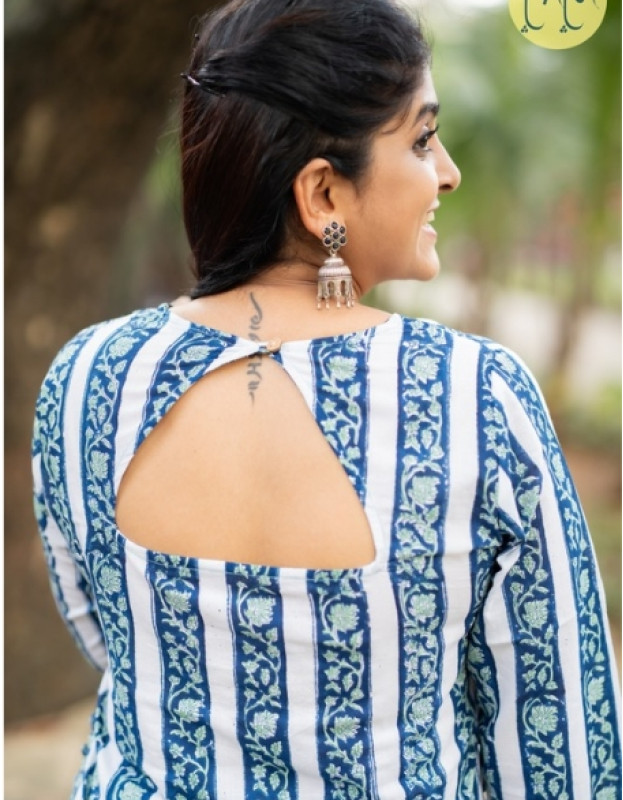 This kurta trouser set with kurta featuring knots on both sides.paired with solid trousers designed with pockets on both sides. Comfortable, easy to wear,and perfect for everyday styling.